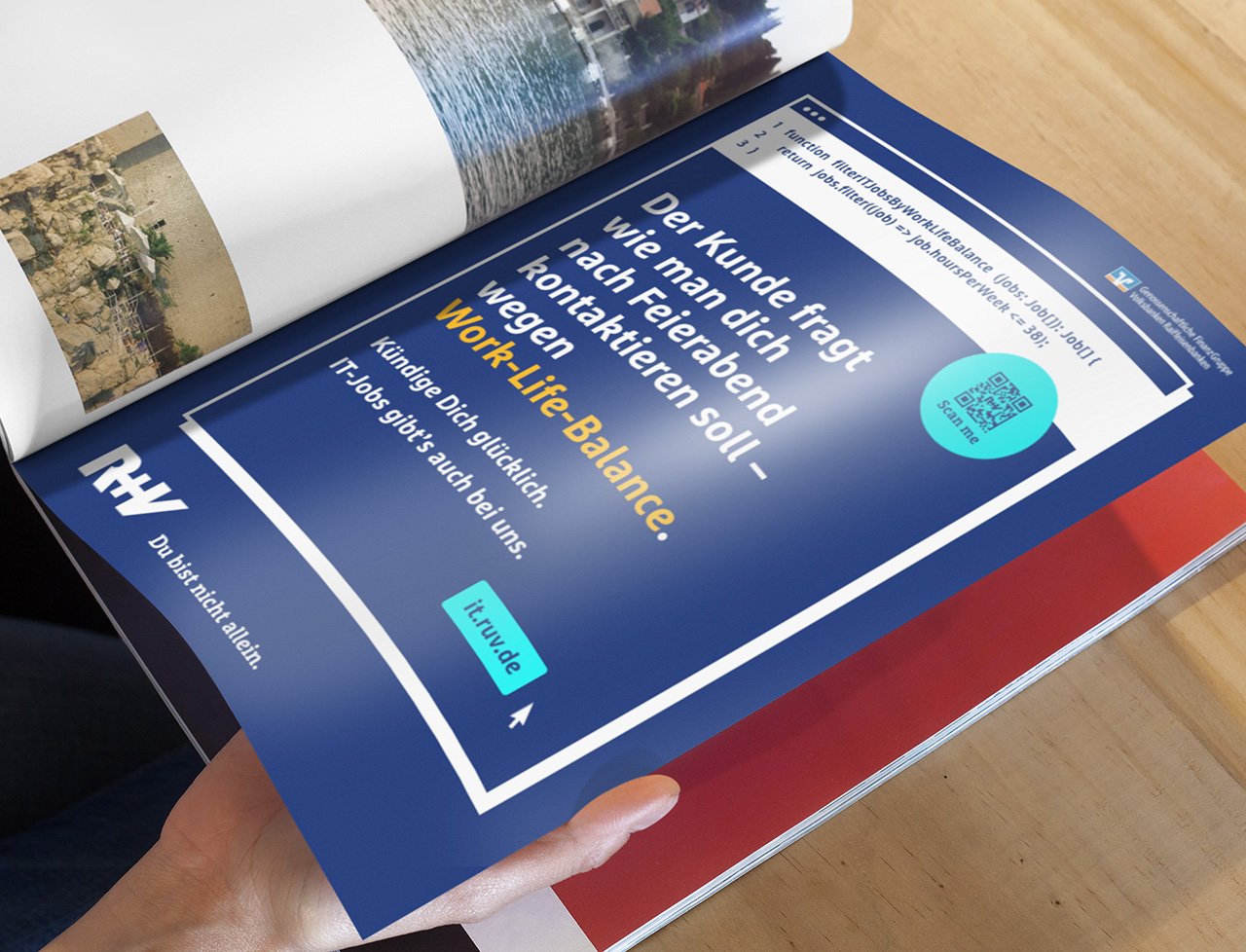 Als Teil der Media-Strategie wurden Außenwerbeflächen gezielt im Umfeld von Unternehmen gebucht, bei denen die größtmögliche Kontakthäufigkeit mit der Zielgruppe zu erwarten war. Neben klassisch plakatierten und digital bespielten Außenwerbeflächen nutzt die Kampagne vor allem Online-Maßnahmen, um Nutzer*innen über Anzeigen auf LinkedIn, Stack Overflow, aber auch Instagram, direkt zur Karriereplattform der R+V zu leiten. Auf it.ruv.de können sie dann direkt in den Bewerbungsprozess einsteigen oder mit einem der Job-Pat*innen formlos in Kontakt treten.