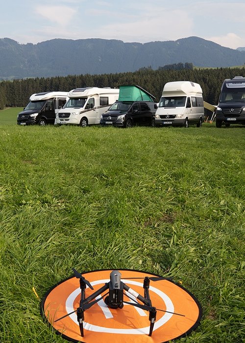 Die erste Neuerung fällt gleich wohltuend ins Auge. Mercedes-Benz hat die Reisemobile aus den engen Messehallen befreit und präsentiert sie in ihrem natürlichen Lebensraum: draußen, in einer atemberaubenden Naturkulisse. Hier stellt Moderatorin Yasmine Blair ausführlich die wichtigsten Reisemobile mit all ihren Vorzügen rund um Exterieur, Technik und die verschiedenen Wohnbereiche vor. Diese lebensnahen Produktvideos sind die zentralen Elemente des digitalen Auftritts, schließlich sollen sie die Besichtigung der Reisemobile am Messestand ersetzen.